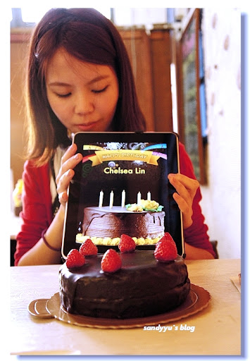 ↑ 沒有準備爉燭,用ipad的來代替一下,我的蛋糕也有像圖片裡淋醬流下來的感覺。