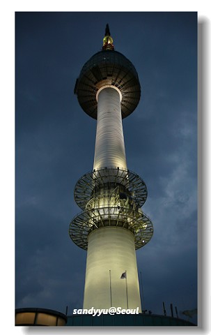 首爾塔除了在別人blog上看到外,仍是從韓劇上認識的,一部戲劇能拍讓人想去那些景點,也是另一方面的成功。首爾塔在海拔243公尺的南山上,是觀賞首爾夜景的好地方。